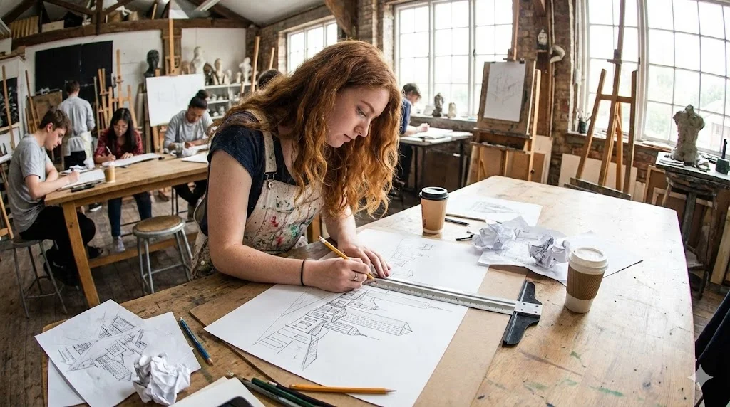 Perspektif çizimi matematiksel bir kesinlik ister. En sık yapılan hata, dikey çizgilerin (duvar kenarları, direkler) kağıdın kenarına paralel olmamasıdır. Eğer dikey çizgileriniz sağa veya sola yatarsa, çizdiğiniz bina "yıkılıyormuş" gibi görünür. Cetvel kullanmaktan çekinmeyin; gözünüz terbiye olana kadar cetvel en iyi dostunuzdur.